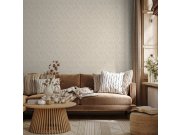 Geometrická jemně strukturovaná béžová tapeta s jemnými odlesky.