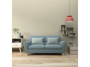 Vliesová tapeta s geometrickým vzorem v bílých, šedých a okrových odstínech.