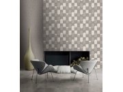 Luxusní, výrazně plastická, geometrická vliesová tapeta s vinylovým povrchem, odstíny šedo-béžové s kovovým leskem. Foto interiéru je pouze ilustrační - odlišné barvy.