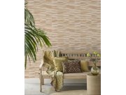 Plastická béžovo-růžová vliesová tapeta s vinylovým povrchem, geometrický vzor. Barvy jsou méně syté, reálu odpovídá interiérové foto.