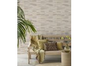 Luxusní, výrazně plastická, geometrická vliesová tapeta s vinylovým povrchem, odstíny šedo-béžové s kovovým leskem. Foto interiéru je pouze ilustrační - odlišné barvy.