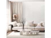 Luxusní, výrazně plastická, geometrická vliesová tapeta s vinylovým povrchem, barva slonové kosti, pololesk. Foto interiéru je pouze ilustrační - odlišné barvy.