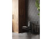 Vliesová tapeta s geometrickým vzorem. Podklad bílá, vzor šedá, stříbrné detaily.