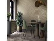 Pololesklá hnědo-zlato-černá vliesová tapeta s vinylovým povrchem, efektní geometrický 3D vzor, látková textura.