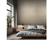 Luxusní černá vliesová tapeta s vinylovým povrchem, smyčky v ostínech zlaté a hnědo-zlaté, štuková textura. Foto interiéru je pouze ilustrační.