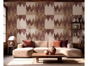 Luxusní plastická vliesová tapeta s vinylovým povrchem, geometrický vzor v odstínech hnědé, béžové, okrové a terakota; hrubší textura. Foto interiéru je pouze ilustrační - odlišné barvy.