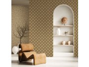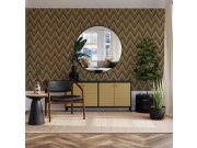 Luxusní vliesová tapeta s vinylovým povrchem, efektní geometrický retro vzor v odstínech hnědé, béžové a zlaté.