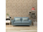 Luxusní vliesová tapeta s vinylovým povrchem, 3D geometrický vzor v odstínech metalické hnědo-béžové. Foto interiéru je pouze ilustrační - odlišné barvy. Co vás zaujme: textura, kvalita zpracování, šíře role. Design: 3D, grafický. Úroveň tapetování: pro z