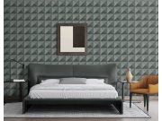 Vliesová tapeta s vinylovým povrchem, jemně plastická textura, odstíny šedé a čenré, odlesky a odstíny vytváří geometrický vzor. Foto interiéru je pouze ilustrační - odlišné barvy. Co vás zaujme: vysoká odolnost a omyvatelnost. Design: nadčasový, klasický