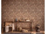 Geometrická vliesová tapeta s 3D efektem, kostky v odstínech cihlové a hnědé, látková textura.