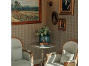 Luxusní vliesová tapeta s vinylovým povrchem, vlnkový vzor v odstínech vínové, hnědo-zlaté a béžové. Foto interiéru je pouze ilustrační - odlišné barvy.