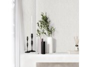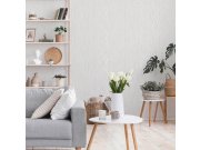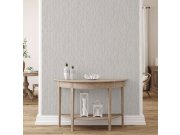 Luxusní metalická vliesová tapeta s plastickým krémovým geometrickým vzorem na podkladě imitující štukovou omítku. Foto interiéru je pouze ilustrační - odlišné barvy.
