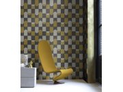 Jemně plastická šedo-okrová geometrická vliesová tapeta s vinylovým povrchem.