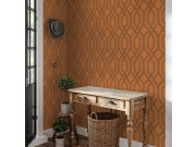 Vliesová tapeta na zeď s vinylovým povrchem a geometrickým vzorem v oranžových odstínech.
