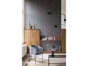 Tmavě šedá jemně strukturovaná vliesová tapeta s geometrickým vzorem.
