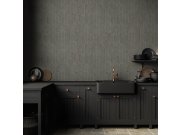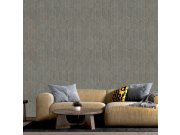 Luxusní hnědá vliesová tapeta s vinylovým povrchem, plastický geometrický vzor s metalickým pololeskem, bronzové linie.