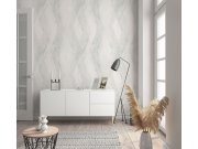 Geometrická vliesová tapeta na zeď, odstíny šedé a černé. Motiv dřeva a mramoru, metalické obrysy. Prostřih 0 nebo 38,8cm.