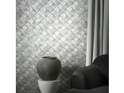 Luxusní vliesová tapeta s vinylovým povrchem, 3D geometrický vzor v odstínech šedo-stříbrné. Foto interiéru je pouze ilustrační - odlišné barvy. Co vás zaujme: textura, kvalita zpracování, šíře role. Design: 3D, grafický. Úroveň tapetování: pro začátečník