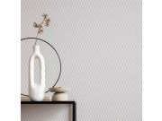 Luxusní geometrická vliesová tapeta s vinylovým povrchem, efektní střídání plastických textur, barva slonové kosti a světle šedá. Foto interiéru je pouze ilustrační - odlišné barvy.