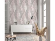 Vliesová tapeta s omyvatelným vinylovým povrchem - geometrické vzory odstínech šedé a růžové.