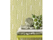 Tapety Yara » Tapety dle materiálu » Vliesové tapety » Geometrická vliesová tapeta na zeď, zeleno-béžová, retro, 340562, Groovy, Eijffinger