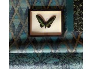 Tyrkysová geometrická vliesová tapeta, látková textura 45244, Feeling, Emiliana