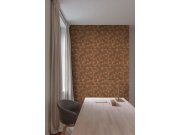 Luxusní metalická vliesová tapeta v bronzové barvě s plastickým růžovým geometrickým vzorem na podkladě imitující štukovou omítku. . Foto interiéru je pouze ilustrační - odlišné barvy.