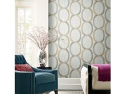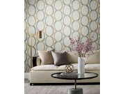 Hladká vliesová tapeta na zeď, geometrické vzory - ovály - v odstínech šedé, béžové a zlaté na jemně žíhaném podkladu.