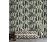 Moderní geometrická vliesová tapeta s výrazným vzorem v zelených, šedých a bílých odstínech.