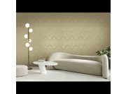 Béžová vliesová tapeta na zeď s nádechem khaki s jemným geometrickým metalickým vzorem.