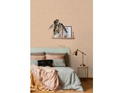 Hnědé, béžové a bílé kostky na matné vliesové tapetě. Foto interiéru je pouze ilustrační - odlišné barvy.