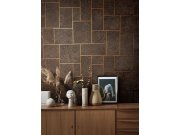 Hnědo-bronzová vliesová tapeta na zeď, metalické efekty, imitace vintage omítky.