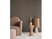 Hnědá vliesová tapeta s vinylovým povrchem, imitace mačkané hrubší látky, kovový pololesk. Foto interiéru je pouze ilustrační - odlišné barvy.
