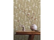 Hnědá vliesová tapeta s rostlinami a ptáčky, 139324, Vintage Flowers, Esta Home