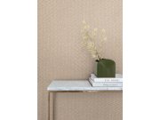 Jemně plastická hnědá vliesová tapeta na zeď, krémové flíčky.