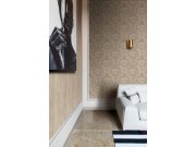 Vliesová tapeta na zeď s vinylovým povrchem se zámeckým ornamentálním vzorem v hnědých a béžových odstínech.