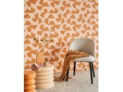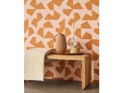 Růžová vliesová tapeta na zeď, hnědý retro geometrický vzor. . Tapeta vhodá do ložnice, obýváku i pracovny.
