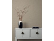 Jemně plastická metalická hnědo-zlatá vliesová tapeta na zeď, imitace hrubší látky.