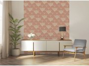 Béžová vliesová tapeta s vinylovým povrchem, medově hnědý matný a zlatý rostlinný květinový motiv.