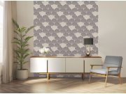 Béžová vliesová tapeta s vinylovým povrchem, hnědý matný a zlatý rostlinný květinový motiv.