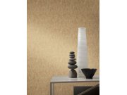 Jemně plastická metalická hnědo-zlatá vliesová tapeta na zeď, imitace hrubší látky.