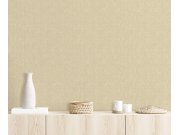 Pololesklá strukturovaná vliesová tapeta s vinylovým povrchem, hrubší látková textura v odstínech hnědé, béžové a zlaté.