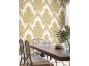 Krémová hladká předklížená tapeta na zeď, hnědo-zlatý květinový ornamentální zámecký vzor, ananas.