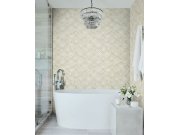 Krémová vliesová tapeta na zeď, stylizované lastury s perlovým leskem.