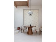 Luxusní krémová vliesová tapeta s vinylovým povrchem, plastický vzor s perlovými odlesky. Foto interiéru je pouze ilustrační - odlišné barvy.