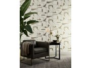 Luxusní jemně strukturovaná šedo-béžová vliesová tapeta, hladké zlaté ornamenty.