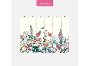 Květinová vliesová fototapeta s motivy lučních květin. . Tapeta má navazující vzor, pokud potřebujete pokrýt širší stěnu, stačí přikoupit další kus (sadu 6 pruhů). Jednotlivé pruhy samostatně objednat nelze.