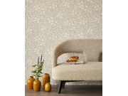 Květinová tapeta s přírodními motivy béžové a šedé barvy.