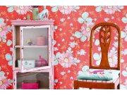 Květinový vzor na jahodové vliesové tapetě.