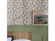 Krémová vliesová tapeta na zeď, pestrý květinový vzor.